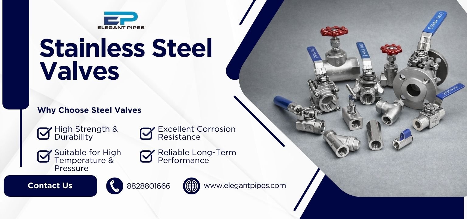 The product range supplied by Elegant Pipes includes ball valves, gate valves, globe valves, check valves, butterfly valves, and needle valves, available in various sizes, pressure ratings, and end connections. Manufactured in compliance with international quality standards and offered in multiple stainless steel grades, these valves are valued for leak-tight sealing, durability, and low maintenance requirements, making them suitable for domestic and global markets.